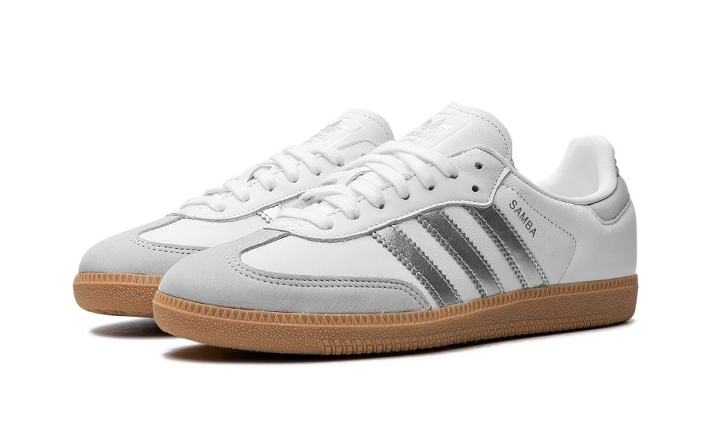 The Adidas Samba White Silver Metallic Gray combines the Samba's classic design with a modern, sophisticated touch, highlighting metallic details that elevate its timeless aesthetic. This model is ideal for those looking for an elegant, versatile and personality-filled sneaker.