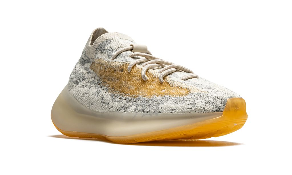 The upper of the Yeezy Boost 380 Yecoraite Reflective is made from Primeknit, a material that fits the foot in a comfortable and flexible way, offering breathability and support. The predominant colors in shades of gray and beige are contrasted with details in orange, creating a dynamic and interesting look. The most striking feature of the model, however, is the reflective finish – the upper part is treated in such a way that, when exposed to light, the sneaker shines, creating an impressive visual effect that brings an extra dimension to the design.