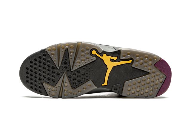 The upper of the Jordan 6 Retro "Bordeaux" is made from premium leather and soft suede, with a black base that is contrasted by touches of burgundy (Bordeaux) on the heel panel, side and upper. These burgundy details, combined with the mint green on the Jumpman and the other colorful elements of the sneaker, give it a vibrant and modern look. The choice of colors, which mixes the traditional with the bold, brings a subtle elegance that is at the same time full of personality.