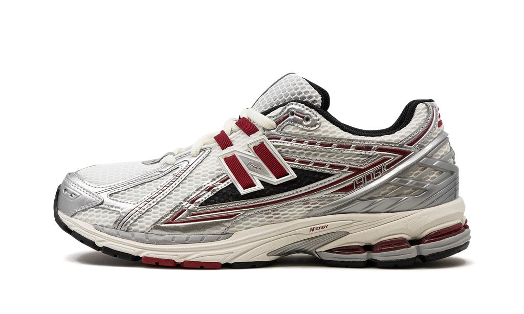 The New Balance 1906R "Silver/Crimson" combines the classic design of the 1906R line with a futuristic and sporty touch. Inspired by running shoes from the 2000s, this model brings a dynamic and sophisticated look, perfect for those looking for style and comfort on a daily basis.