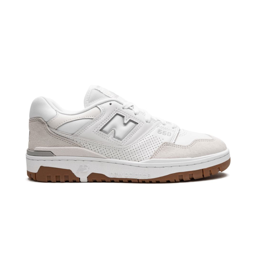 The New Balance 550 "White/Gum" is the perfect combination between a retro design and the versatility of white with a gum sole. With a white premium leather upper, the model maintains the classic and minimalist aesthetic, bringing a clean and sophisticated look to any occasion.