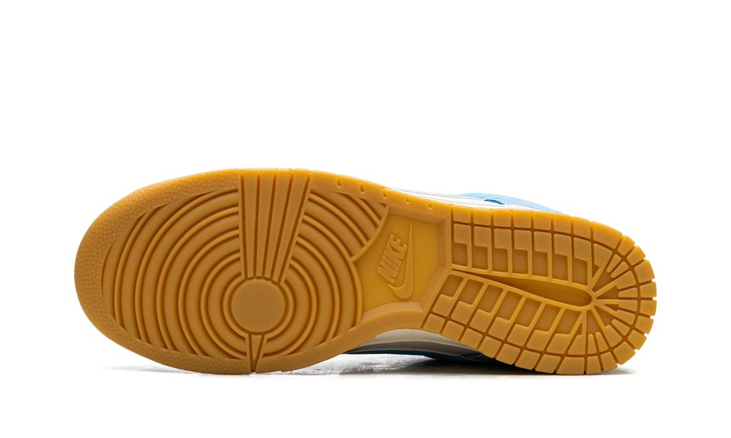 The upper of the Nike Dunk Low Baltic Blue is composed of a mix of premium leather and suede, creating a sophisticated and durable texture. The model is dominated by a deep blue tone, which references "Baltic Blue", while the Side Swoosh appears in soft green, creating a vibrant and subtle contrast. Details in white on the seams, tongue and back of the sneaker complement the look, maintaining an elegant and modern balance.