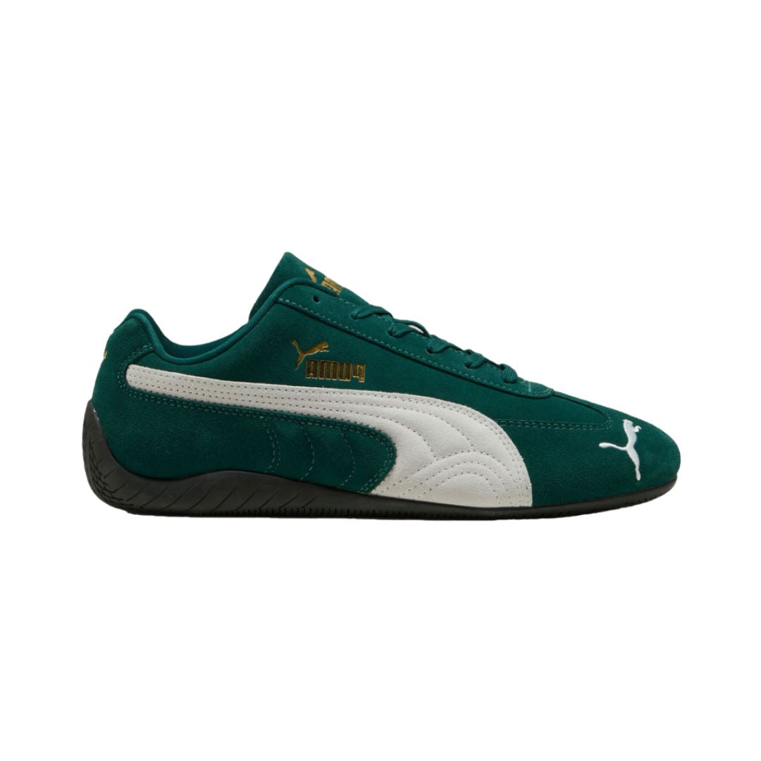 The Puma Speedcat OG "Dark Myrtle" is a unique piece that mixes elegance and sophistication with a touch of originality. With its high-quality synthetic leather upper and textile details, the model offers durability and comfort, ideal for daily use. The color "Dark Myrtle", a deep and sophisticated green, is the highlight, providing a distinct and modern look, while the black and white details complete the design in a balanced and discreet way.